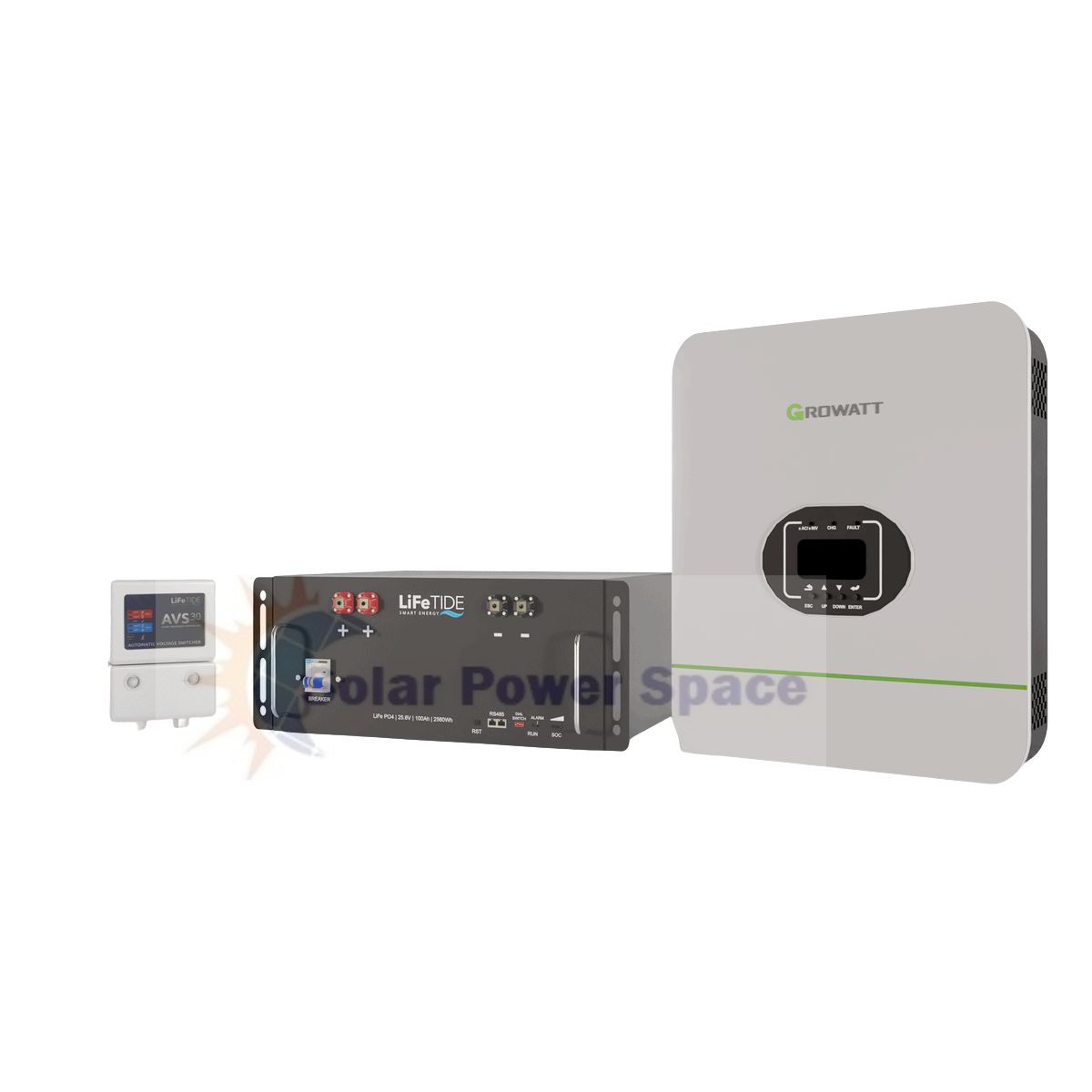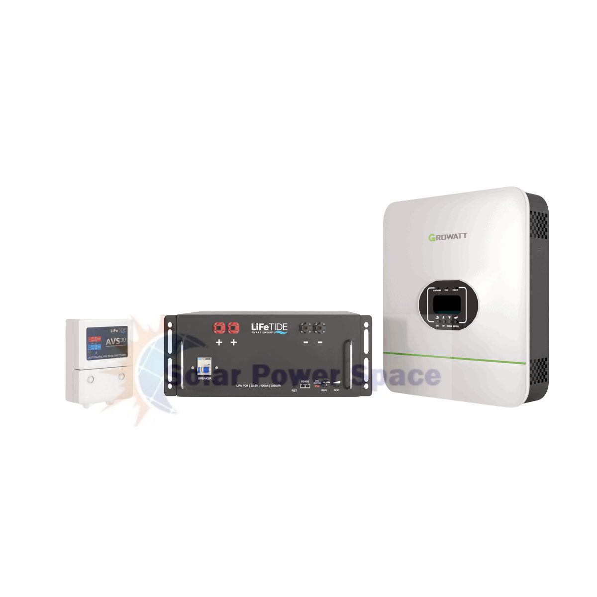 Buy 3kW Growatt Load Shedding Kit | 2560Wh LiFePO4 Battery South Africa, Compact Off-Grid Solar Kit — Growatt 3kW Inverter + 100Ah Lithium Battery, Affordable Load Shedding Solution | Growatt SPF 3000TL + LiFeTIDE 2560Wh, 3kW Growatt Inverter with Lithium Battery | Best Backup Power for Homes, Small-Scale Solar Kit — 3kW Growatt Inverter & 25.6V LiFePO4 Battery